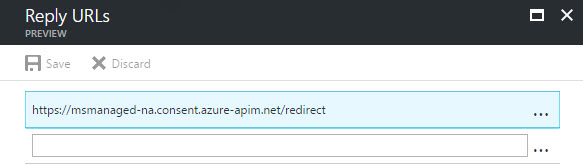 The second application registration in the Flow tutorial has a reply URL of https://msmanaged-na.consent.azure-apim.net/redirect. The redirect URL points to the secure token store managed by the Flow/PowerApps ecosystem. The tokens are used to make on-behalf calls by PowerApps and Flow on-behalf of the user to the underlying service (in this case the Web API). In the Azure portal, the redirect URL is entered in the Reply URLs blade (Figure 4)