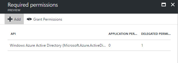 The proxy application must have access to the web API. In the Required Permissions blade, the web API will not be shown. The application name must be entered manually, then selected from the list (Figures 5-7).