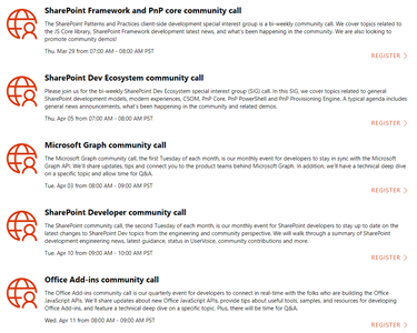 SharePoint Patterns and Practices, monthly – https://aka.ms/sppnp-call